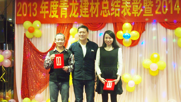 晚宴上,青龍廣西分公司韋流武先生代表集團(tuán)董事長宋總致晚宴開幕辭并送上新年祝福。韋經(jīng)理總結(jié)了2013年青龍廣西化學(xué)建材的發(fā)展歷程,肯定了2013年所取得的成績,并對2014年寄予了美好展望。之后對2013年青龍廣西化學(xué)建材表現(xiàn)優(yōu)異的員工進(jìn)行表彰,鼓勵大家向他們學(xué)習(xí),繼續(xù)為生產(chǎn)中國較好的防水材料而奮斗。