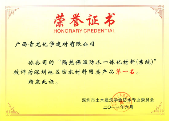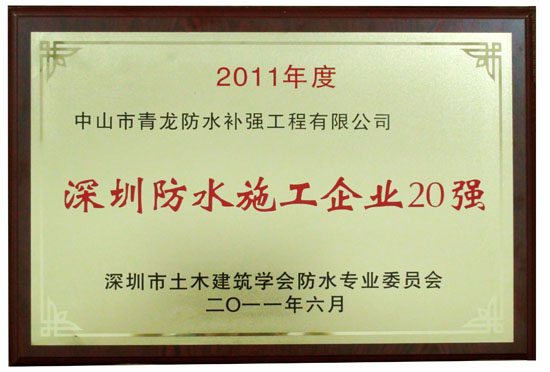 青龍防水補(bǔ)強(qiáng)榮獲“深圳建筑防水企業(yè)20強(qiáng)”, 隔熱保溫防水一體化材料全國(guó)領(lǐng)先