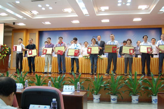 青龍公司代表徐工(左四)上臺(tái)領(lǐng)獎(jiǎng)
