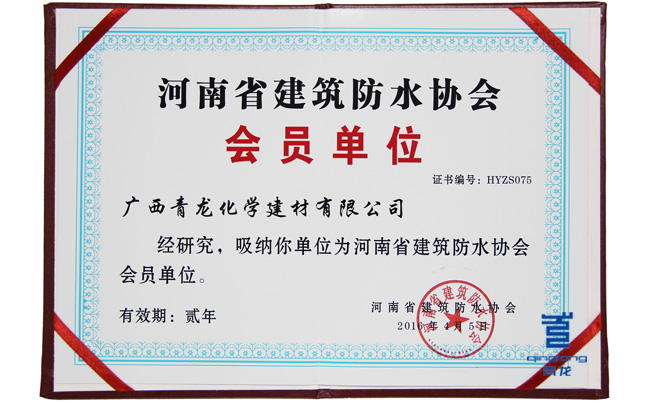 青龍公司獲得河南防水協(xié)會(huì)會(huì)員證書