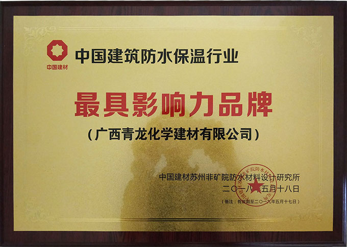青龍榮獲"中國建筑防水保溫最具影響力品牌"稱號(hào)