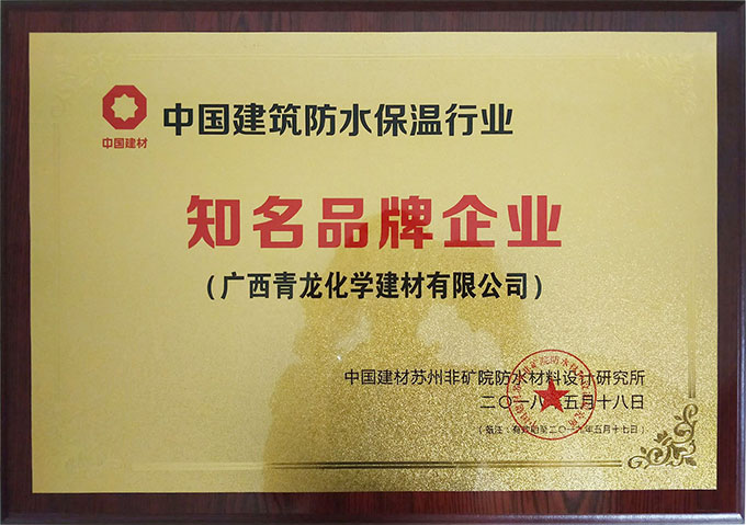 青龍榮獲"中國建筑防水保溫知名品牌企業(yè)"稱號(hào)