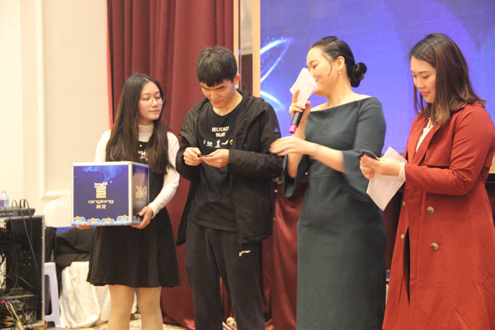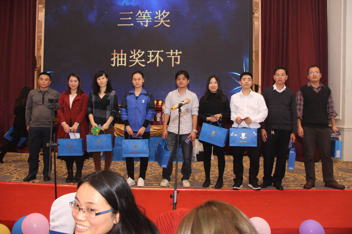 除了精彩的文藝節(jié)目,更讓人充滿期待的當(dāng)然是晚會標(biāo)配的抽獎啦!今年公司為大家準(zhǔn)備了微信搖一搖、精美實(shí)物獎勵、微信紅包和現(xiàn)金紅包等等多項(xiàng)多種大獎,主持人每一次的報(bào)獎都讓大家小心臟撲通撲通的跳,充滿希望,中獎?wù)呦膊蛔詣?!一輪又一輪大獎也將年會推向高潮,大家都非常的興奮,歡快!