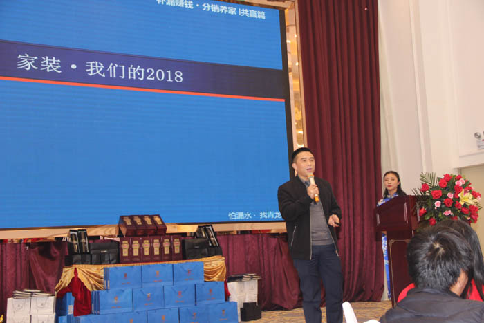 青龍家裝防水事業(yè)營銷總監(jiān)于超軍作《家裝,我的2018》總結(jié)報(bào)告,簡要分析了2018年青龍家裝防水市場開發(fā)情況及存在的問題,對2019年的重要工作作了部署,召開大家同心同德,再創(chuàng)輝煌!
