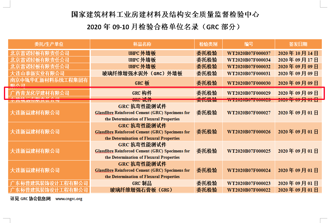 此次我司GRC構(gòu)件成功通過(guò)國(guó)家質(zhì)量監(jiān)督檢驗(yàn)中心檢測(cè),是業(yè)界及國(guó)家對(duì)我司技術(shù)、管理、質(zhì)量提升與創(chuàng)新的充分肯定;青龍產(chǎn)品質(zhì)量是杠杠滴!23年的老品牌,放心的好品牌!