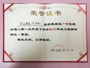 青龍防水材料質量可靠,鄺洪根團隊榮獲雅居樂防水工程綜合評比一等獎