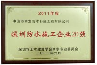 青龍防水補(bǔ)強(qiáng)榮獲“深圳建筑防水企業(yè)20強(qiáng)”, 隔熱保溫防水一體化材料全國領(lǐng)先