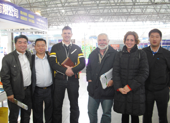 公司常務(wù)副總陳經(jīng)富先生(左一)、云南分公司總經(jīng)理劉紅憑先生(左二)同外商在青龍展臺(tái)前合影