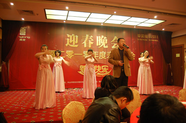 2011年1月14日,中山某大酒店四樓樓宴會廳張燈結彩,座無虛席,洋溢著濃濃的節(jié)日氣氛,青龍公司2011迎春晚會暨2010表彰總結大會在此隆重舉行,青龍公司總部、中山廠、東莞公司、廣州辦、深圳辦、惠州辦的員工代表、特約嘉賓及全體員工350余人出席了聯(lián)歡會。