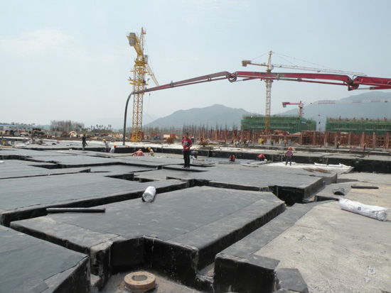 圖為青龍自粘改性瀝青卷材(MQ203)應用在地下室底板