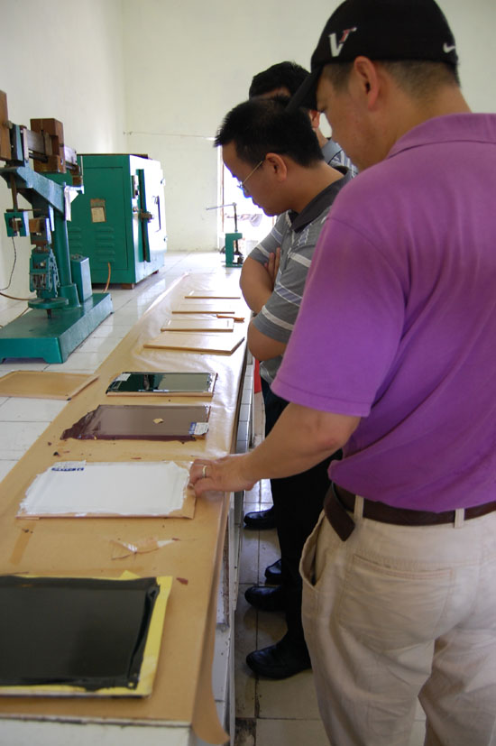 2011年6月2日上午,來(lái)自深圳市建筑工務(wù)署的領(lǐng)導(dǎo)與市政府采購(gòu)中心考察人員在青龍董事長(zhǎng)宋敦清等相關(guān)領(lǐng)導(dǎo)的陪同下參觀了廣西青龍工廠EVB生產(chǎn)車間、防水卷材生產(chǎn)車間、技術(shù)研發(fā)實(shí)驗(yàn)室、產(chǎn)品展示廳等,并認(rèn)真聽(tīng)了廣西青龍董事長(zhǎng)宋敦清的匯報(bào),介紹了青龍公司近年來(lái)跨越式發(fā)展取得的成就,特別是生產(chǎn)規(guī)模、生產(chǎn)秩序、質(zhì)量保障體系,重大工程材料供應(yīng)等工作情況。