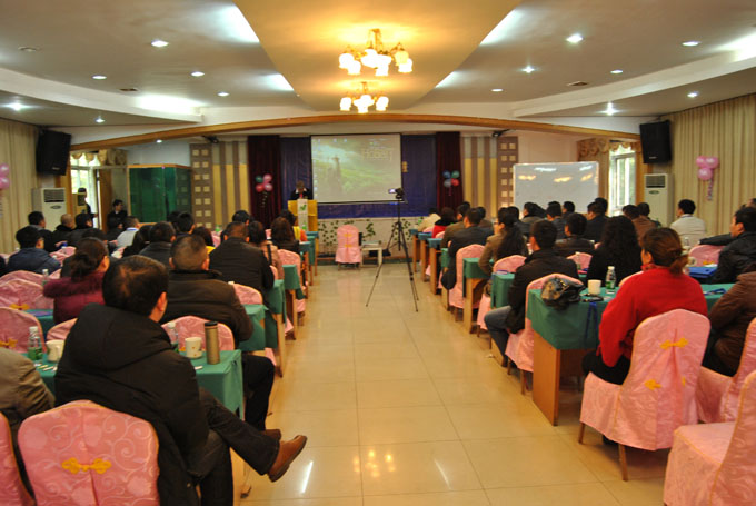 1月16日上午9點,代理商年會正式開始,公司董事長宋敦清先生致歡迎詞。宋董對來自全國各地的代理商們的到來表示了熱烈的歡迎,并對公司2013年的工作進行了部署。他指出,2013年公司將在三個方面開展工作,一是生產(chǎn)基地的升級換代、布點工作和解決相關(guān)物流的配送工作,二是進一步完善和改善生產(chǎn)工藝,三是堅持以技術(shù)推廣會為會議營銷的龍頭,以電子商務為主的線上營銷與傳統(tǒng)的線下營銷方式相結(jié)合的營銷準則,幫助更多的客戶了解青龍品牌和“