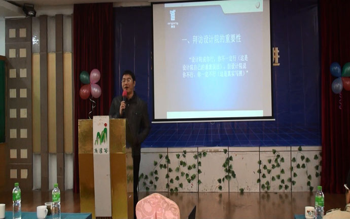 會議還邀請來楊進舟先生作了“如何拜訪設計院”的專題講座,分享他跑設計院的心得以及注意事項。楊總從他自己的經(jīng)歷出發(fā),講述拜訪設計院的重要性,并詳細地解說了設計院設計業(yè)務的流程,找出建材行業(yè)與他們業(yè)務的契合點。之后,楊總還為代理商們出謀劃策,講述如何建設設計院推廣團隊,如何進行業(yè)務員的培訓,如何制定和實施工作計劃以及考核等問題。