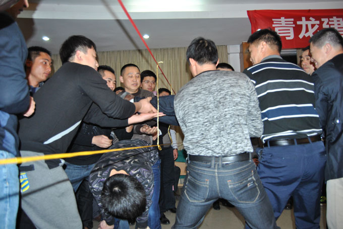 下午進行了精彩的拓展活動,包括共建藍圖、解碼行動、戰(zhàn)國風云七巧板、好的黑洞等項目。與會的代理商們分成六個小組,每個小組之間進行PK,以考驗代理商們的團隊協(xié)作、溝通交流、組織策劃等綜合能力。最觸動人心的是好的黑洞的項目,在這個項目中,所有的代理商們在總指揮的組織下,有秩序地穿越“電網(wǎng)”,雖然中途因為一些隊員不小心觸網(wǎng)而導致整個團隊重新穿越“電網(wǎng)”,但最終在所有代理商們的共同協(xié)作下,團隊取得了“勝利”。在隨后的分享中,不少的代理商都表示深受觸動,“很震撼,會用新的一面去對待這個事情”,“個人的力量是無法生存的,只有團隊的力量才能生存”。
