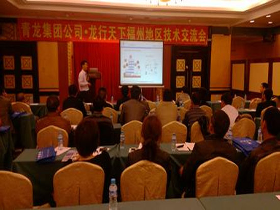 在兩個半小時的推廣會中,青龍建材集團營銷總監(jiān)王定中以福州的建材市場的現(xiàn)狀為例,為大家解析了建材行業(yè)未來的發(fā)展前景,并就青龍建材公司“一個品牌,四門生意”的招商加盟政策做了詳細的介紹。福建大區(qū)域經(jīng)理周炳陽工程師則深入地剖析了青龍牌