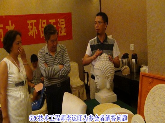 廣西青龍GRC技術(shù)工程師李運(yùn)旺為參會者重點(diǎn)介紹GRC歐式構(gòu)件生產(chǎn)、技術(shù)、前景、使用范圍等內(nèi)容,通過現(xiàn)場做產(chǎn)品介紹和圖片展示讓更多的設(shè)計(jì)師對產(chǎn)品特點(diǎn)及應(yīng)用有了進(jìn)一步的了解。設(shè)計(jì)師們認(rèn)真聽取產(chǎn)品介紹,并積極發(fā)表自己的看法,現(xiàn)場氣氛活躍。