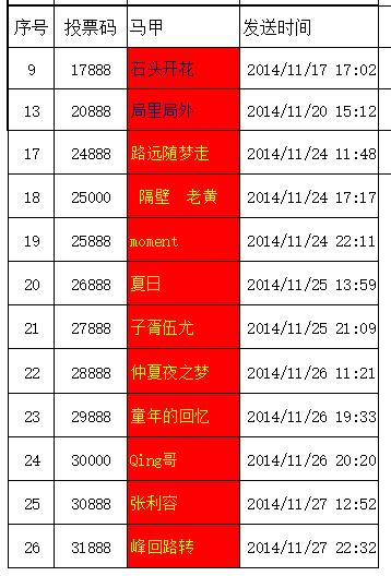 第二批投中并中獎(jiǎng)名單公布如下(包括上期未及時(shí)提交信息):石頭開(kāi)花、局里局外、路遠(yuǎn)隨夢(mèng)走、隔壁 老黃、moment、夏日、子胥伍尤、仲夏夜之夢(mèng)、童年的回憶、Qing哥、張利容、峰回路轉(zhuǎn)。恭喜他們,也請(qǐng)大家繼續(xù)支持青龍,只為青龍投票!