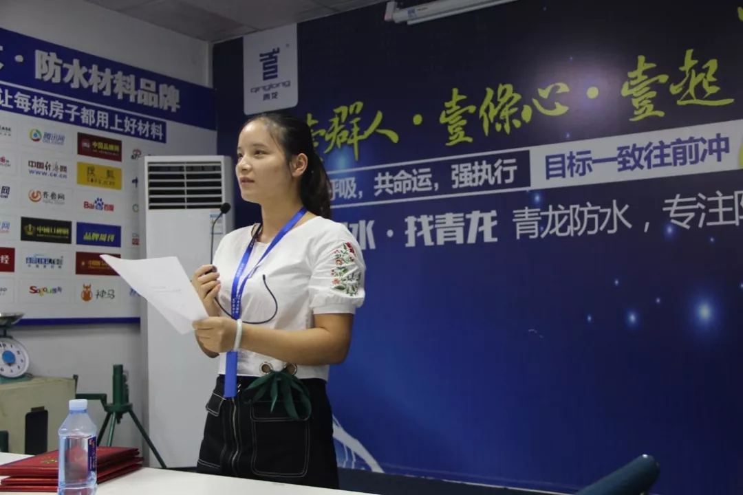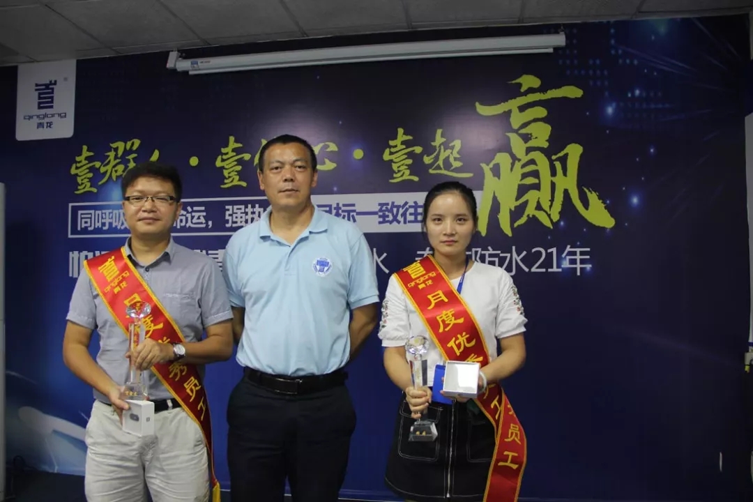 青龍公司董事長宋敦清、營銷總監(jiān)賀金龍、家裝防水事業(yè)部總經(jīng)理于超軍、質(zhì)量總監(jiān)張科、行政經(jīng)理廉金利以及家裝事業(yè)部全體同仁,工裝防水營銷中心、電商部部分人員共四十余人參加了表彰。
