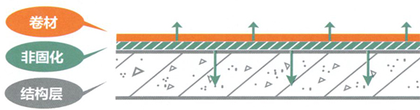 非固化與卷材的復(fù)合做法,主要是將基層進行處理,除去水泥浮皮,露出里面的基層;其次,在基層表面進行非固化防水涂料的噴涂或者涂膜施工,厚度按照設(shè)計要求,一般在1.5mm-2mm之間;之后進行卷材的鋪粘,并用非固化進行搭接處的粘結(jié)。基本上,所有的關(guān)鍵點在于非固化防水涂料的施工,分涂抹和噴涂施工兩種方法,可利用機器進行施工。