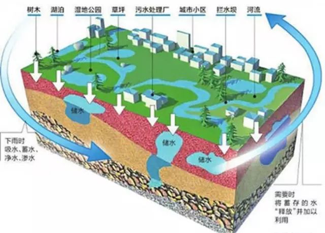 (1)海棉城市,是新一代城市雨洪管理概念,是指城市在適應環(huán)境變化和應對雨水帶來的自然災害等方面具有良好的"彈性",也可稱之為"水彈性城市",國際通用術語為"低影響開發(fā)雨水系統(tǒng)構建"。下雨時吸水、蓄水、滲水、凈水,需要的時候將儲蓄的雨水"釋放"并加以利用。國務院辦公廳出臺"關于推進海綿城市建設的指導意見"指出,采用滲、滯、蓄、凈、用、排等措施,將70%的降的就地消納和利用。
