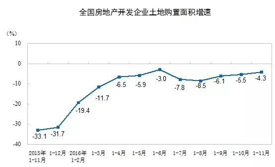 1-11月份,房地產(chǎn)開發(fā)企業(yè)土地購(gòu)置面積19046萬(wàn)平方米,同比下降4.3%,土地成交價(jià)款7777億元,增長(zhǎng)21.4%。
