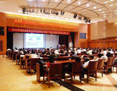 2009年9月10日-11日綠色建筑技術(shù)體系南寧高峰論壇暨廣西地自治區(qū)建筑節(jié)能技術(shù)研討會在廣西建設大廈四樓多功能廳召開。參加會議人員大約200人。9月10日會議由廣西華藍設計(集團)有限公司副總建筑師、研究院副院長、研究院建筑節(jié)能技術(shù)研發(fā)中心主任張霖主持。會議邀請到了綠色建筑行業(yè)專家:廣西人和投資有限公司集團副總楊浩基、中山市青龍化學建材有限公司董事長宋敦清、上海諾浦新型建材有限公司南寧分公司總經(jīng)理郭偉、南寧五星太陽能有限公司總經(jīng)理趙福中等。廣西建科院主要參加有院長彭紅圃、副院長顧濤、綠色建筑研究設計所主任工程師李云舟等。會議上我院領導作了有關(guān)廣西綠色建筑發(fā)展思路、廣西綠色建筑實踐與評價——地方標準《廣西綠色建筑評價》、廣西較好的綠色公共建筑設計案例分析——崇左新型墻體材料科研實驗樓等綠色建筑技術(shù)的相關(guān)精彩報告。