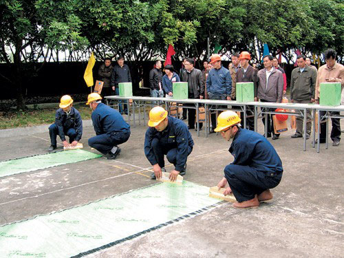 防水材料與施工工藝示范觀摩會。當(dāng)日上午9時(shí)許,觀摩會現(xiàn)場工作人員展示防水施工現(xiàn)象,吸引了全場300多名參觀人員的眼球。主辦方通過展示各種防水材料在陰角、陽角、及管根邊等易滲、漏水的細(xì)部節(jié)點(diǎn)規(guī)范化施工工藝,推行標(biāo)準(zhǔn)化施工工藝以及簡單可靠的防水驗(yàn)收方法,為在場的參觀人員上了生動(dòng)的一課。